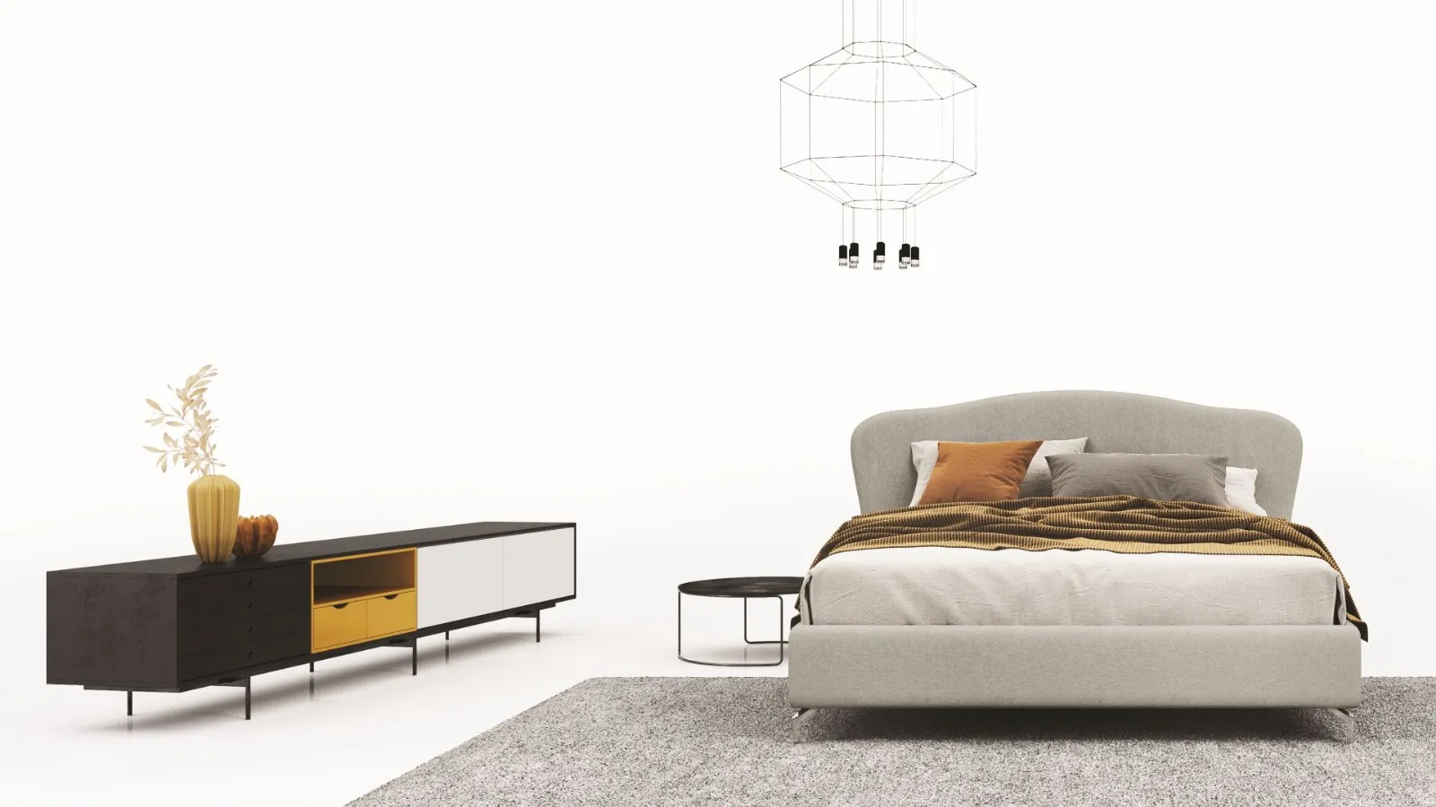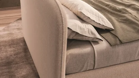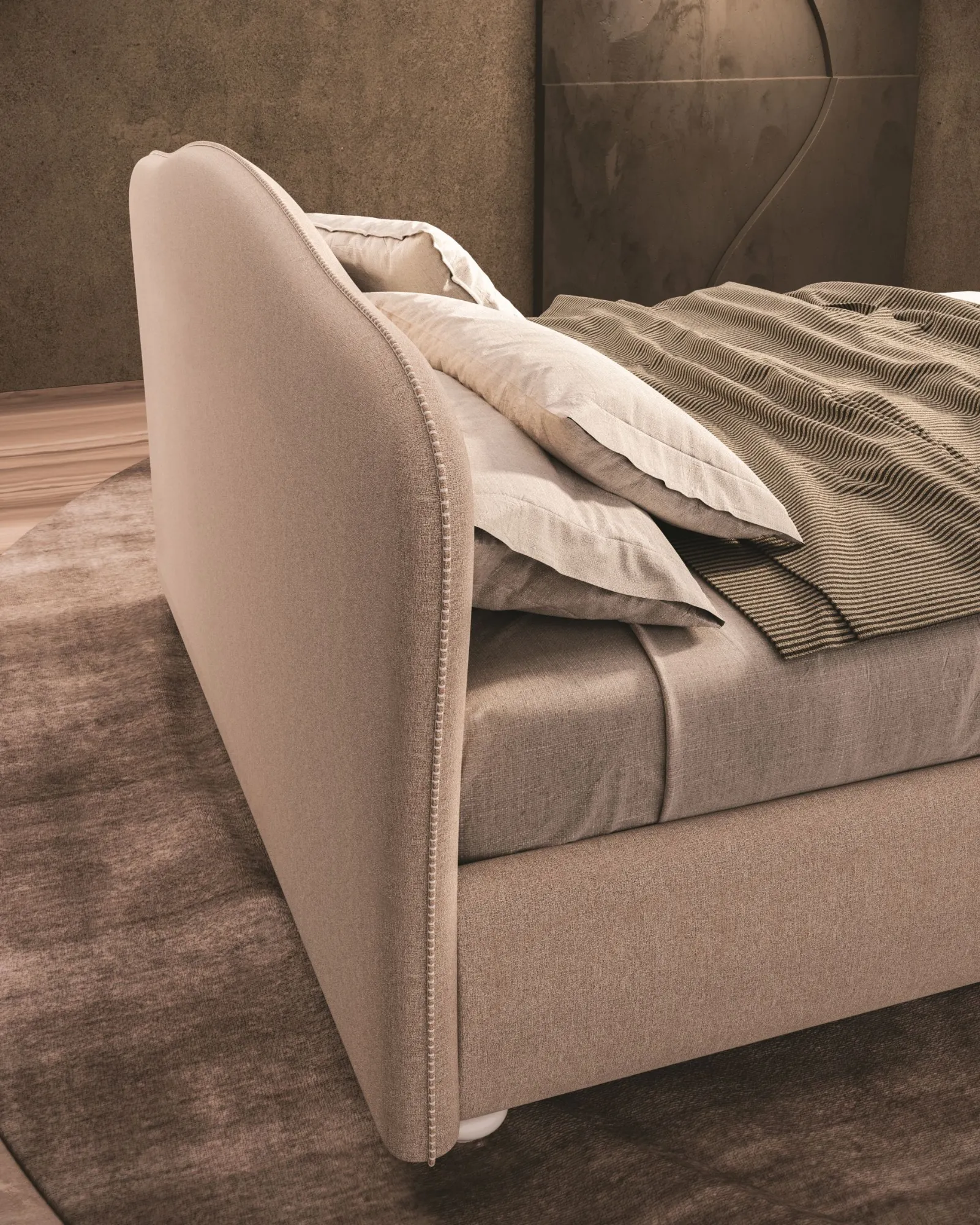 Elegant modern bed with padded and shaped headboard available in two different variants according to your needs. Also attentive to daily practicality: it hides a convenient storage box.
