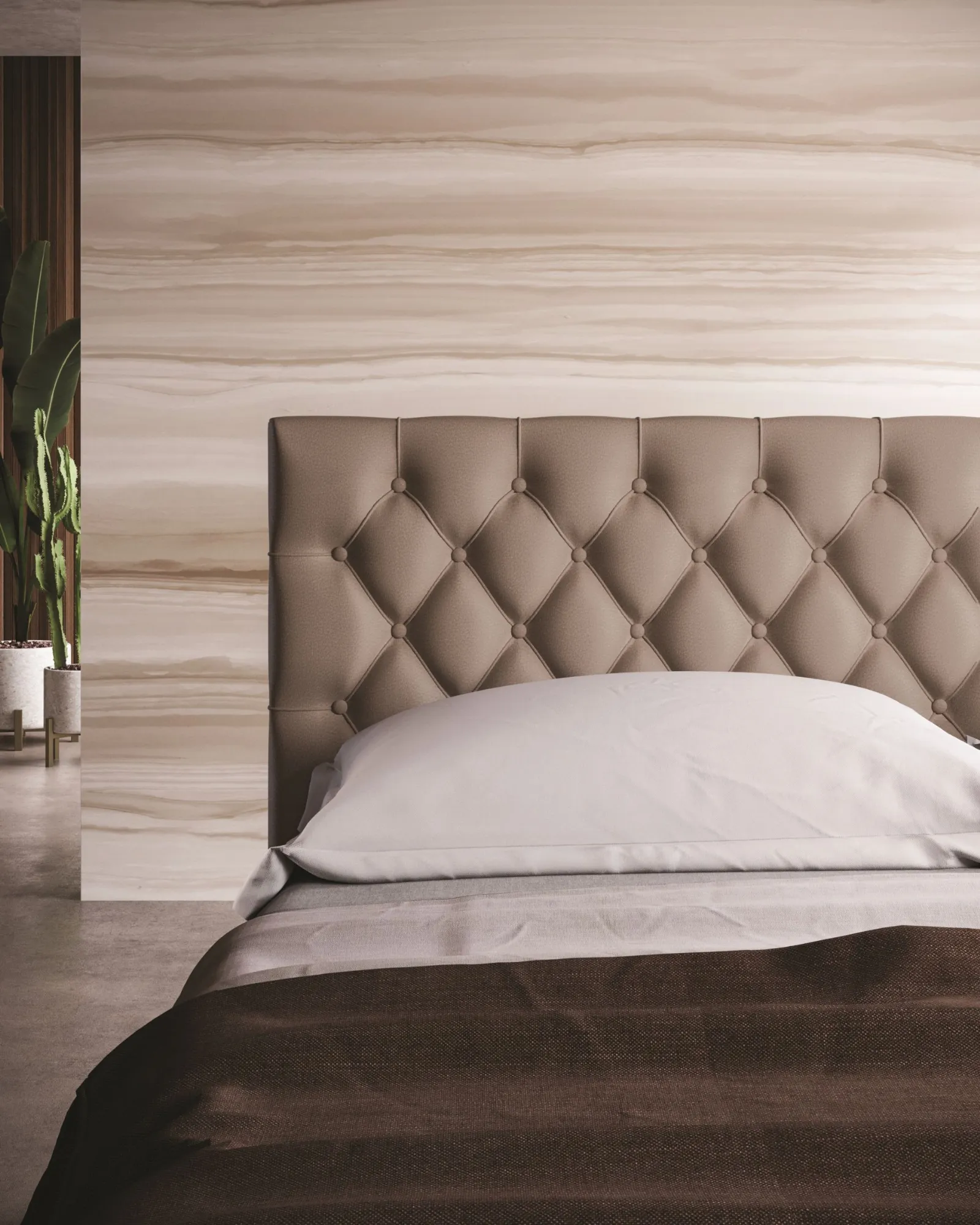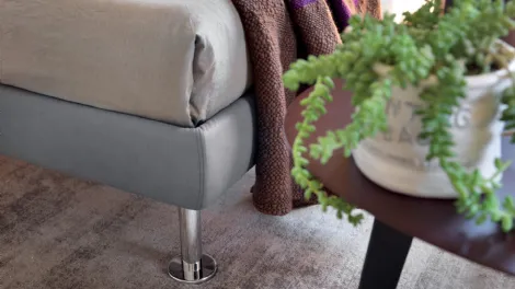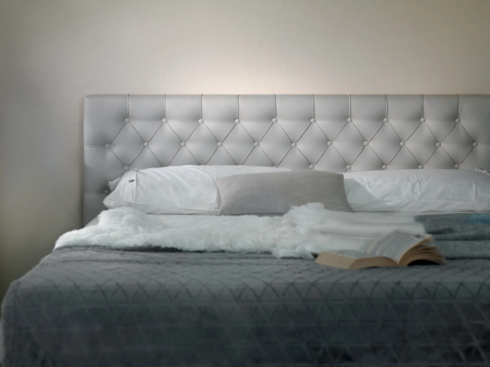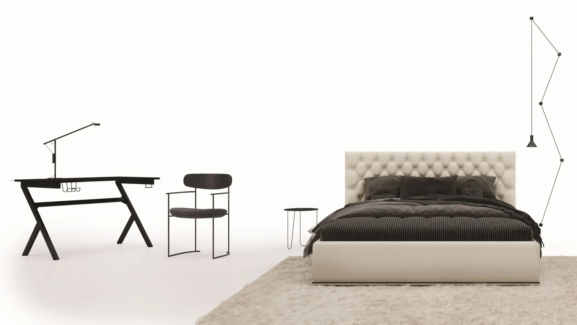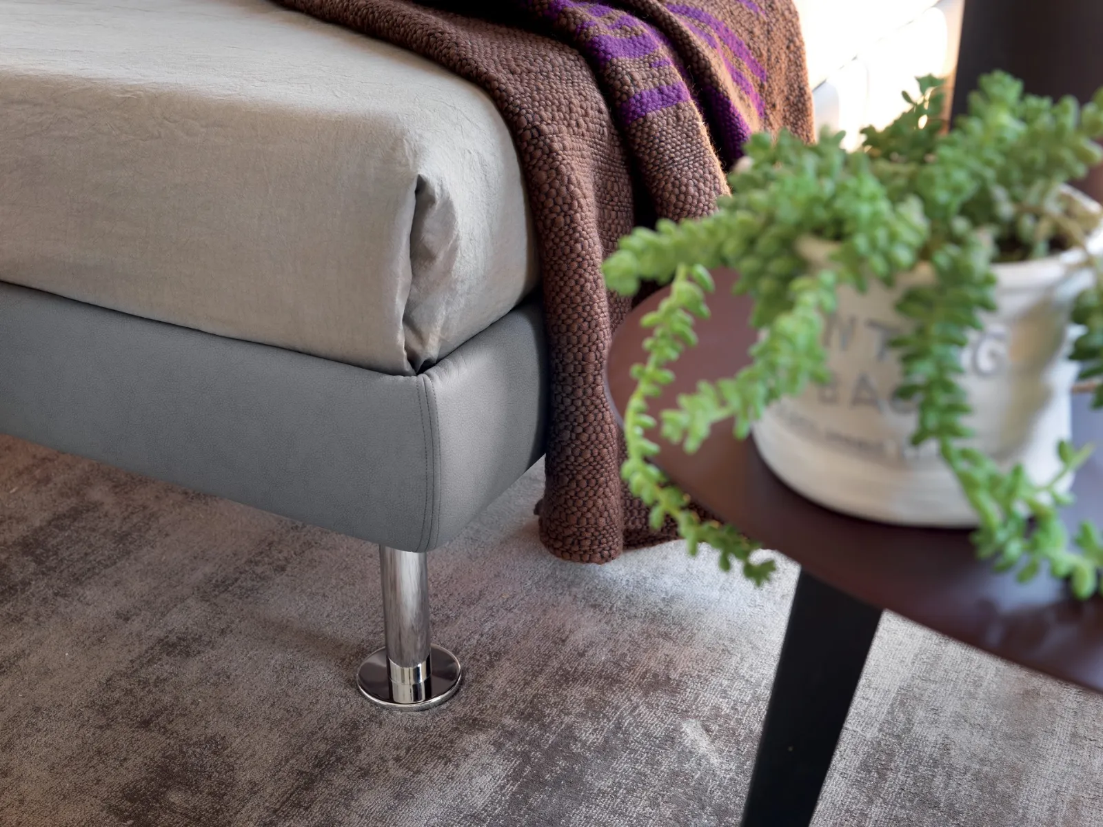 Upholstered leather bed with the unmistakable capitonné workmanship, adaptable to any context, both modern and classic. The design is lightened by the revisited line of the feet.