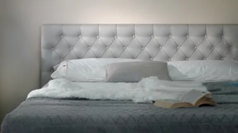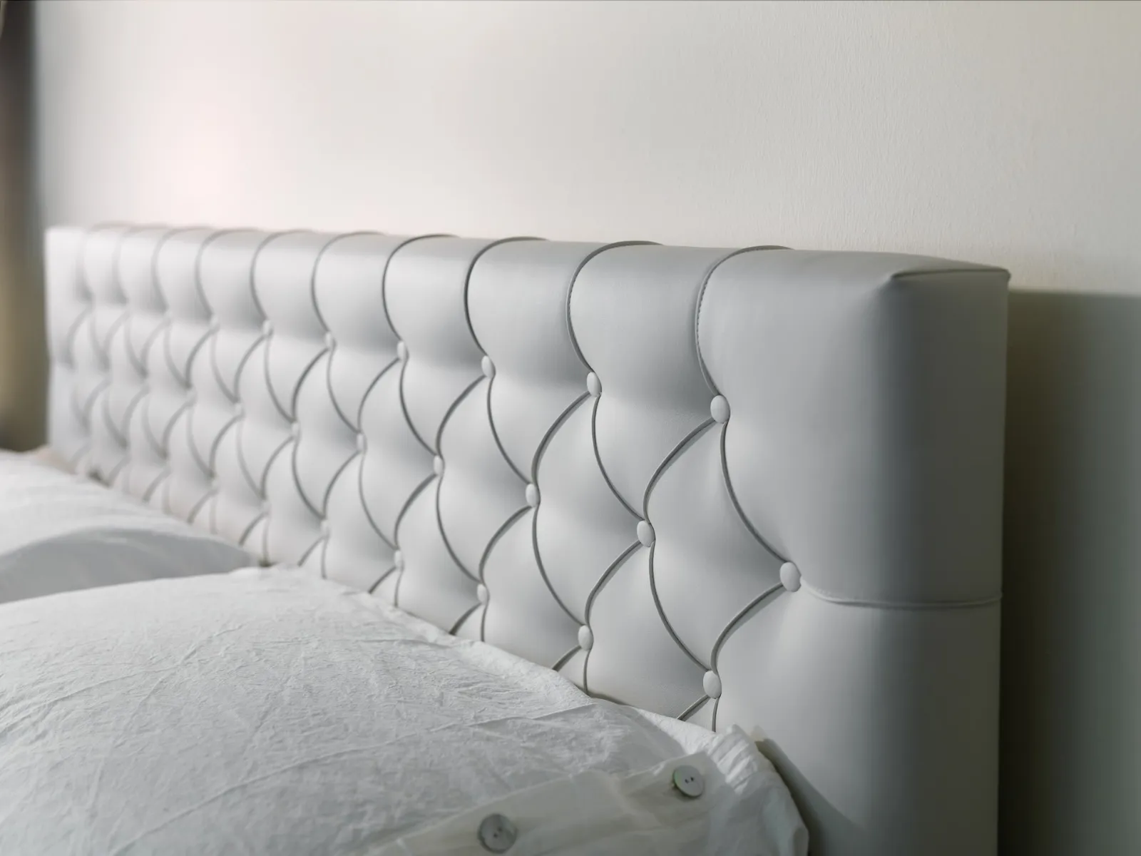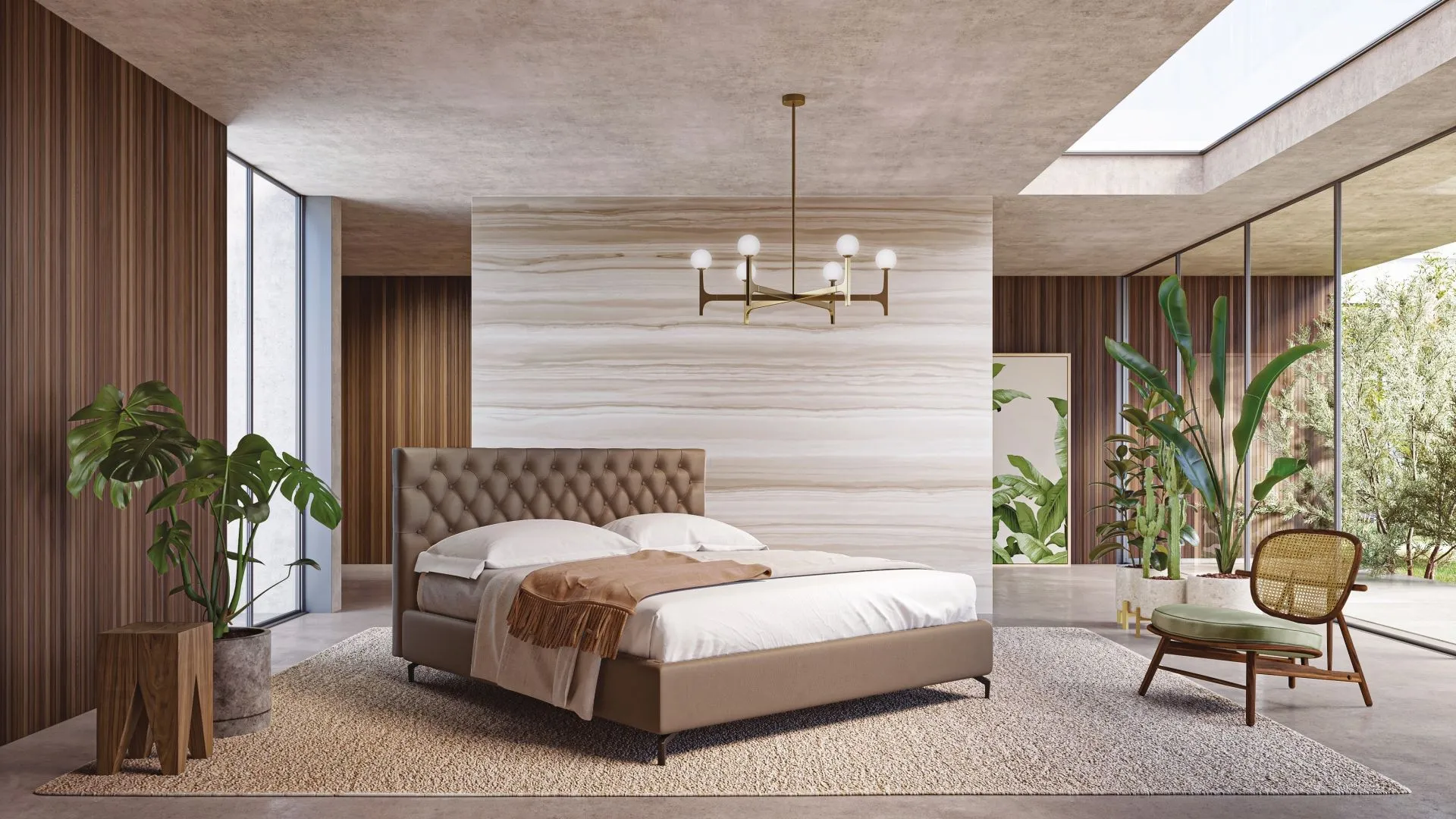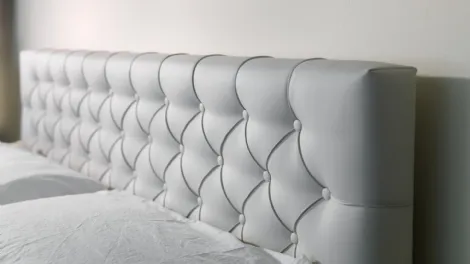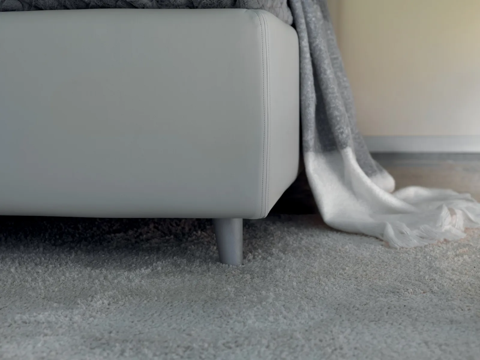 Upholstered leather bed with the unmistakable capitonné workmanship, adaptable to any context, both modern and classic. The design is lightened by the revisited line of the feet.