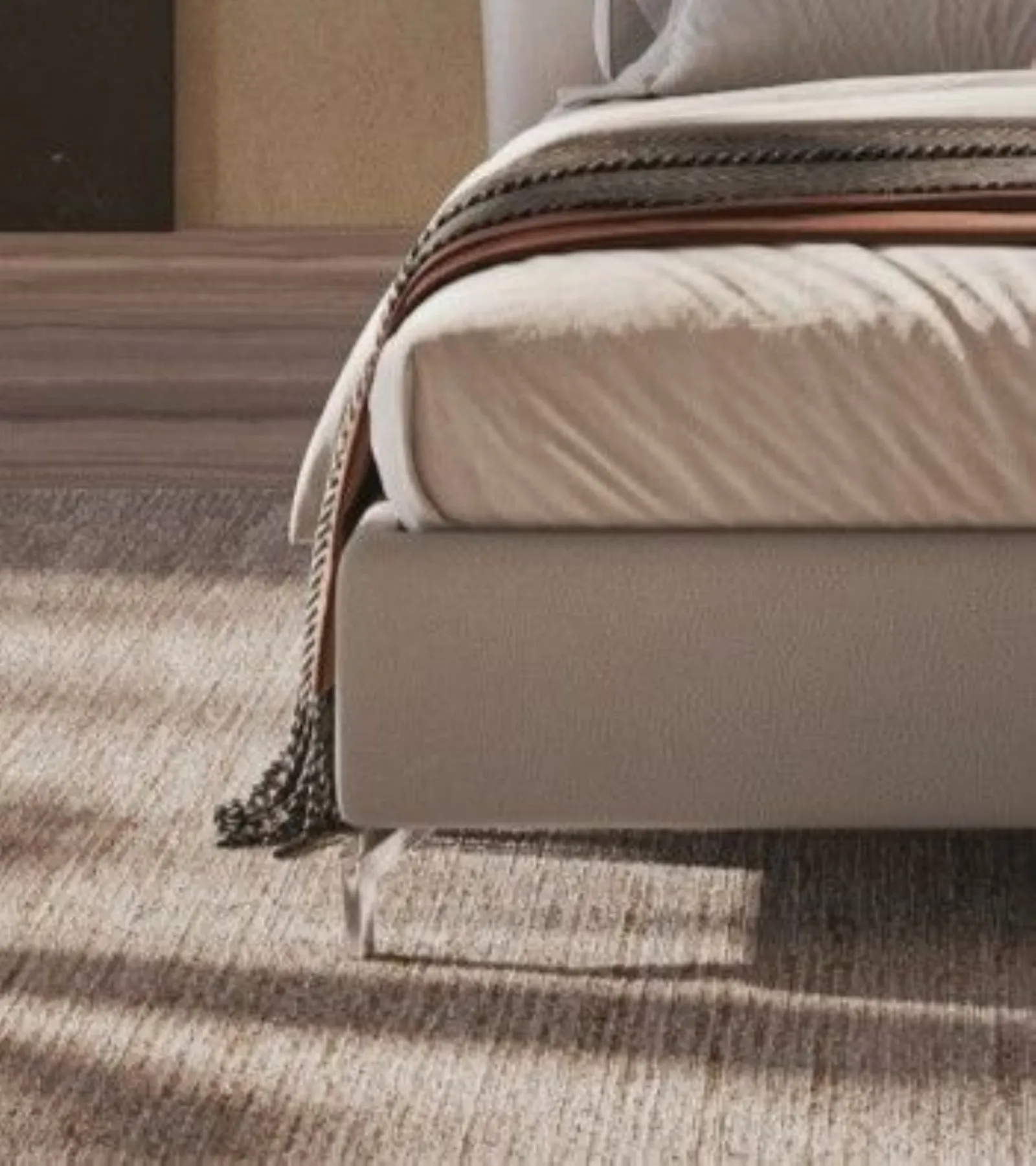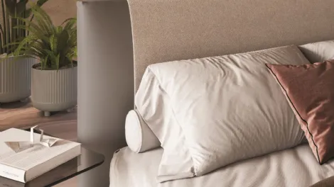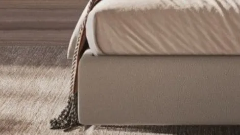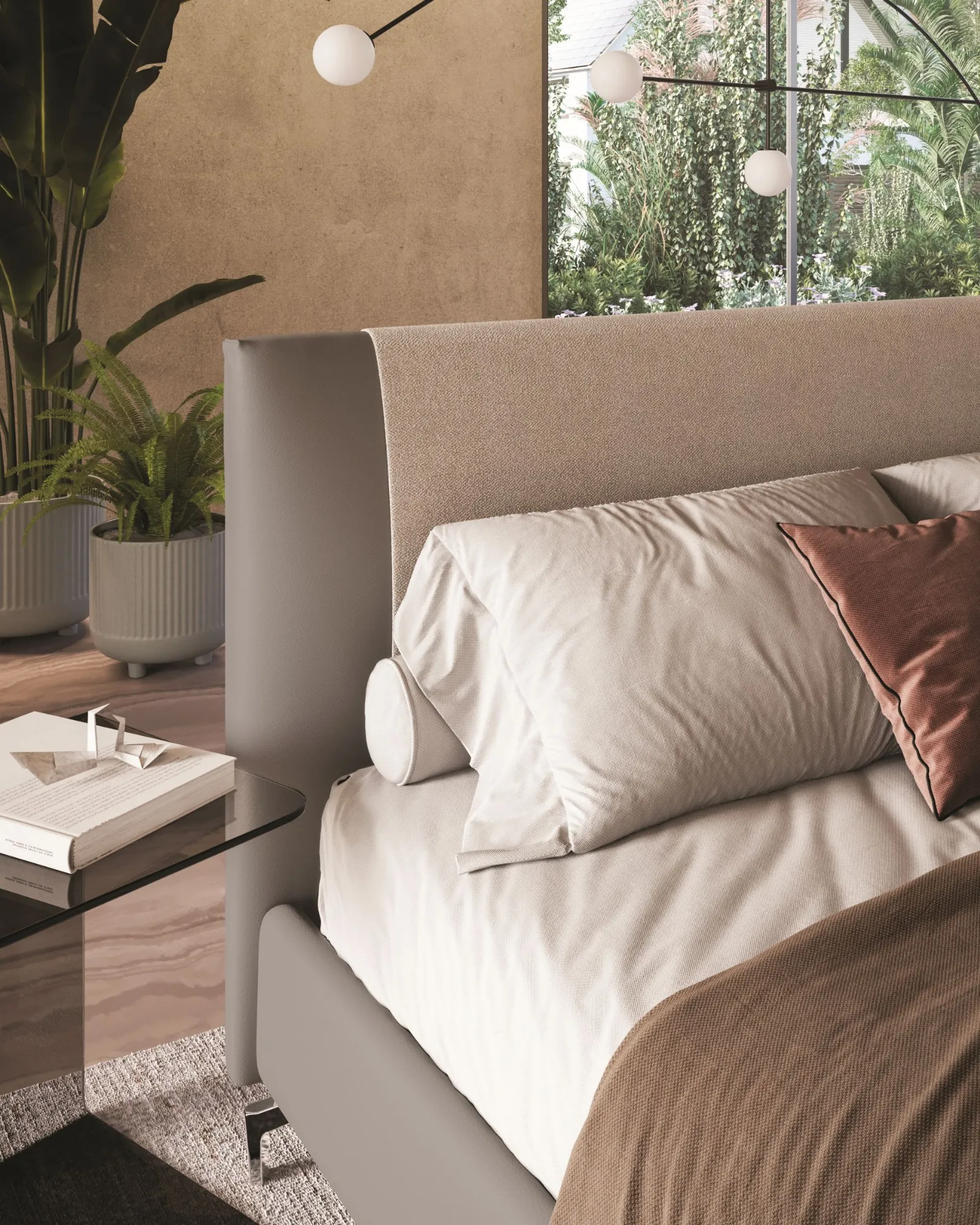 Bed with upholstered headboard and bed frame available in various versions of bed frame and feet, also with bed skirt.