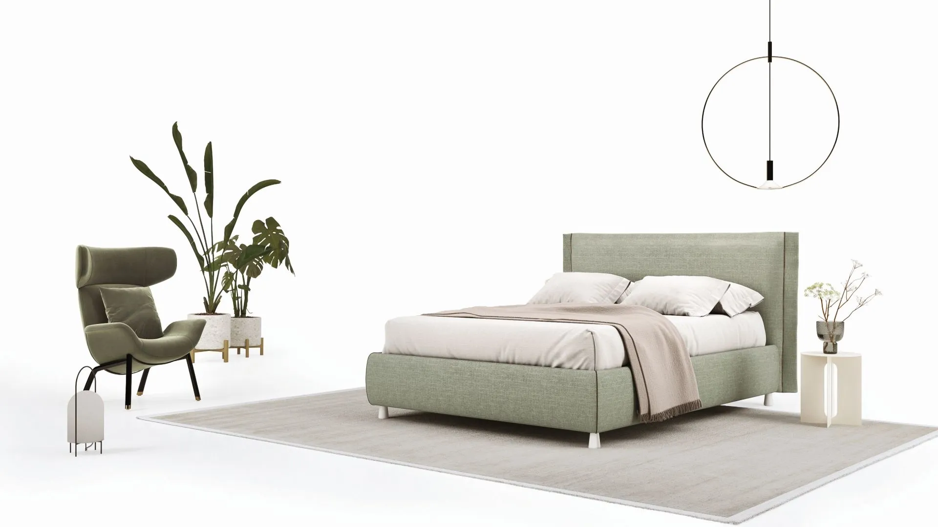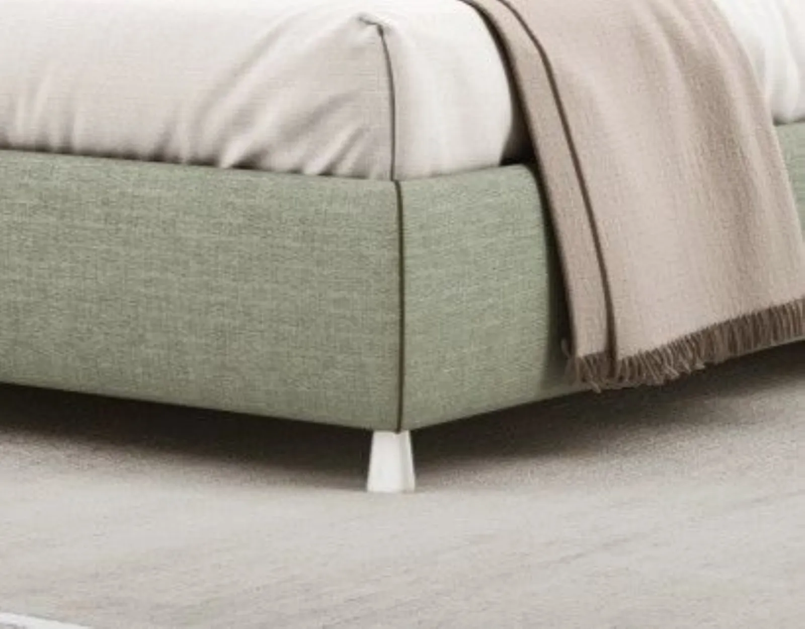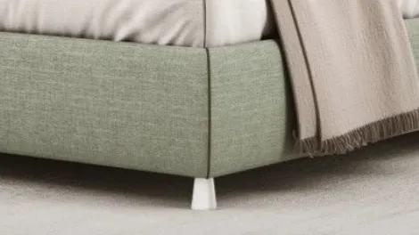 Bed with padded headboard available in various bed frame versions and feet, also with bed skirt.