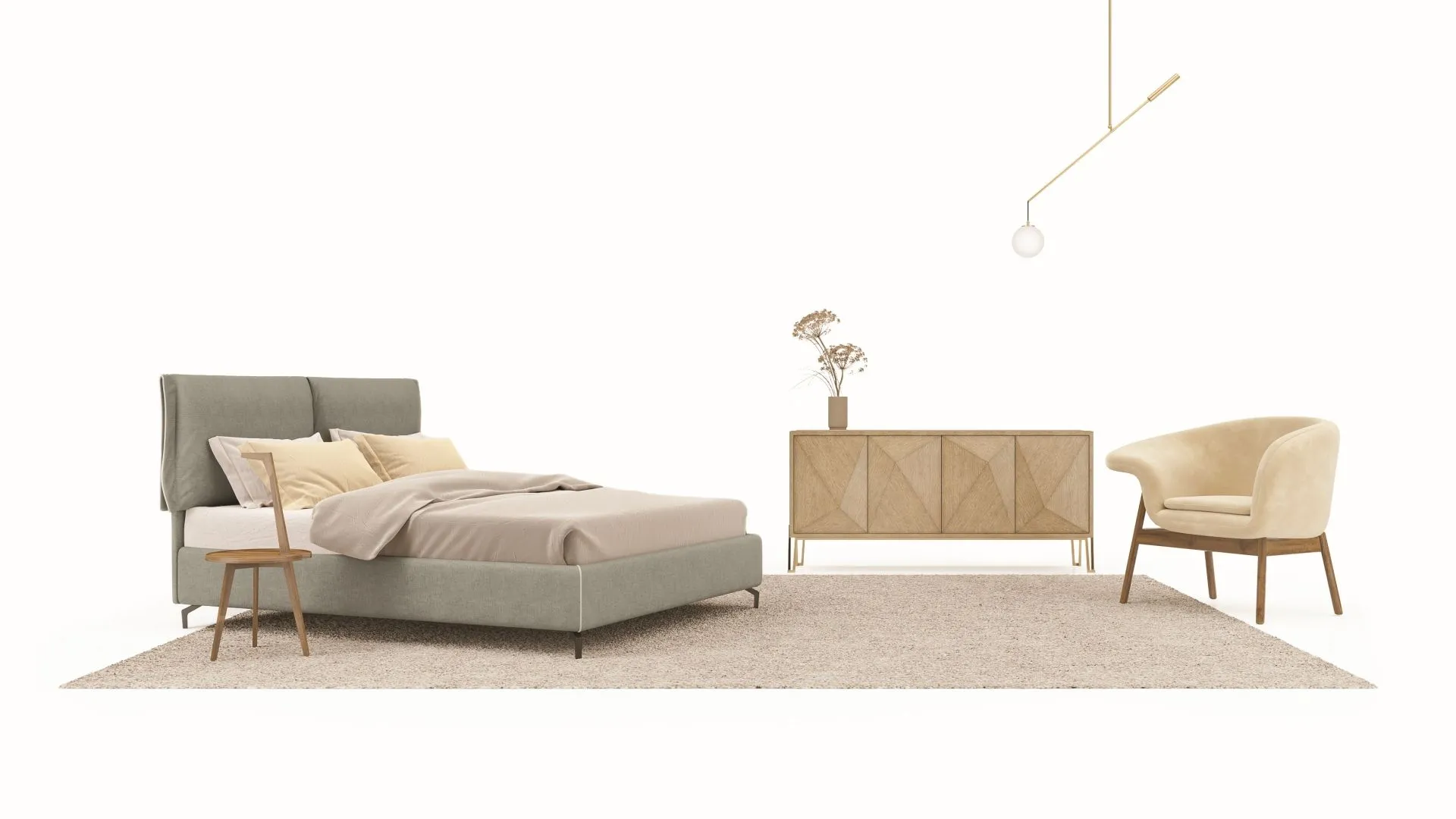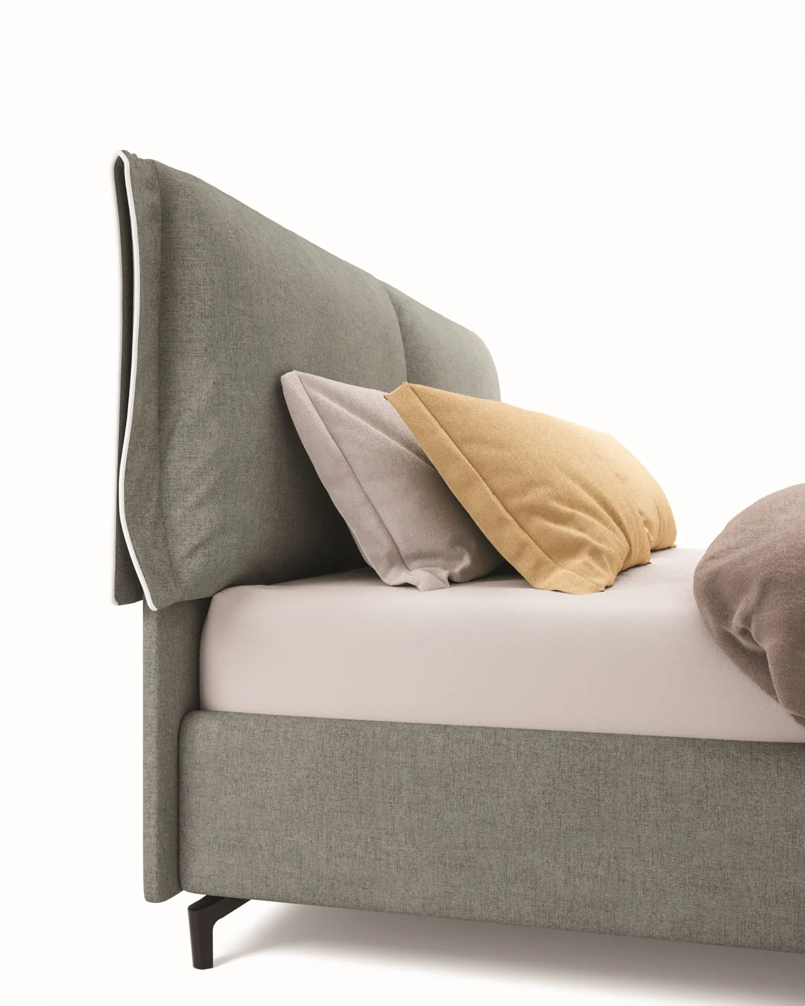 Bed with padded available in various versions of headboard and legs, also with bed skirt.