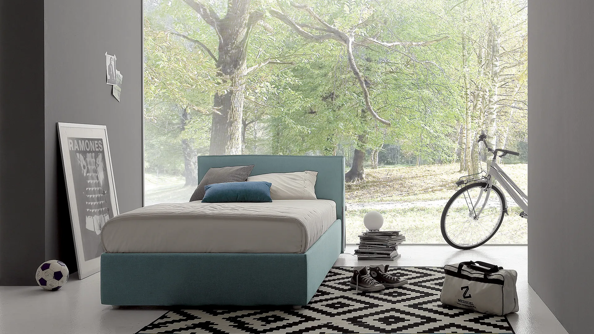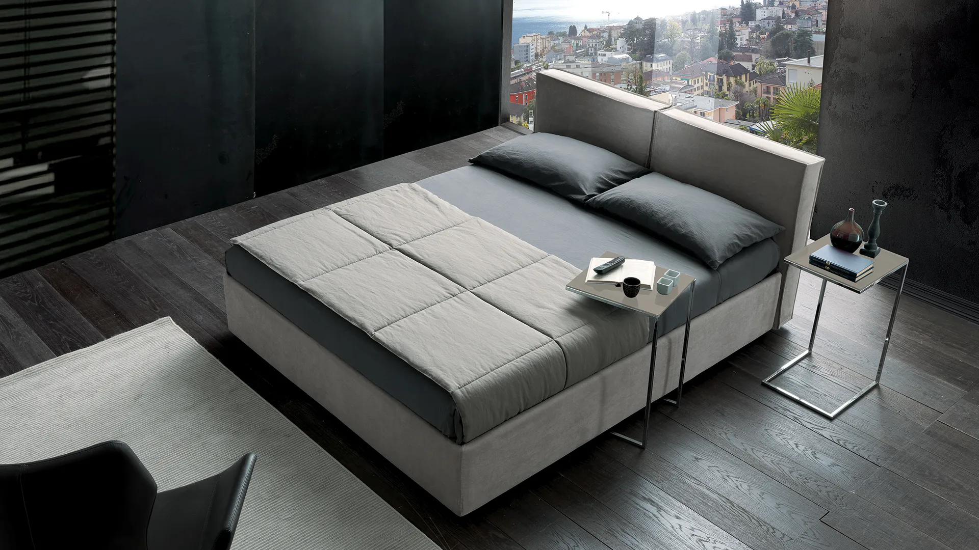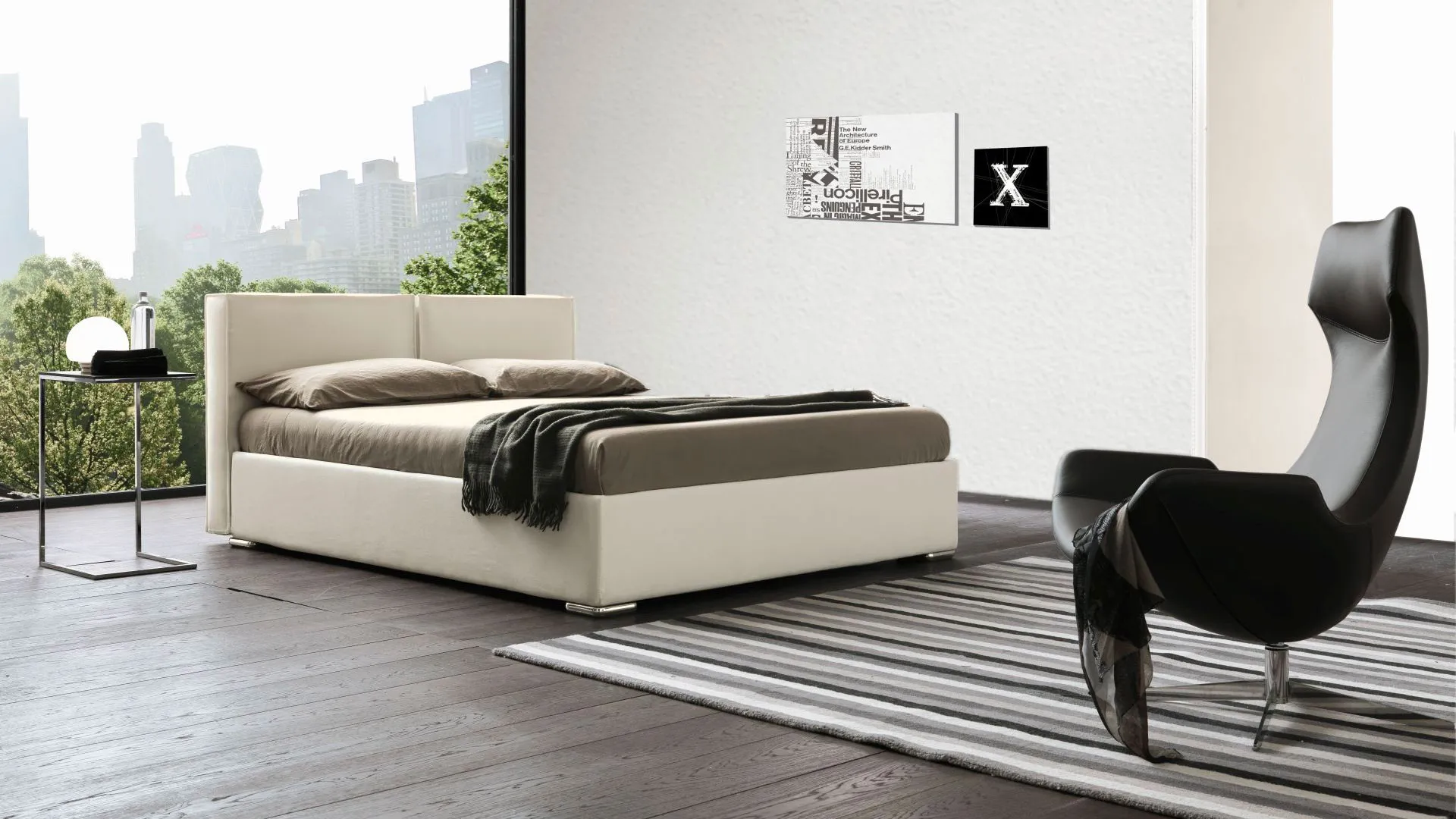Modern bed with upholstered headboard, high-end bed frame or base to meet every need. Discover also the version with practical and functional storage box.