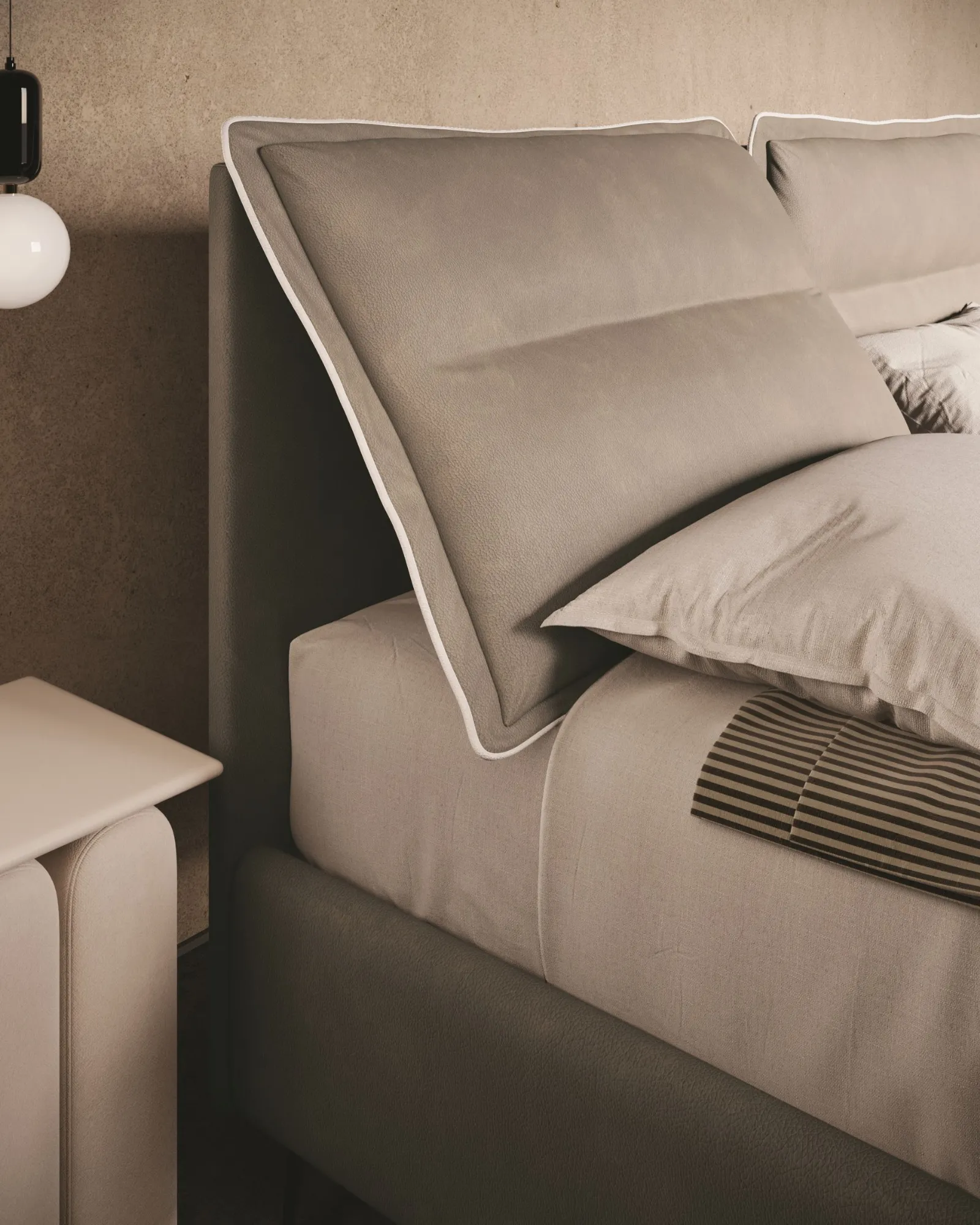 The Lanuit fashion house aims at refinement and an excessive care to detailin its finishings and haute couture details, proposing exclusive finishingsto enhance your bed and make it unique.