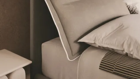 Padded bed available in fabric or eco-leather. It is also possible to choose the version with storage.