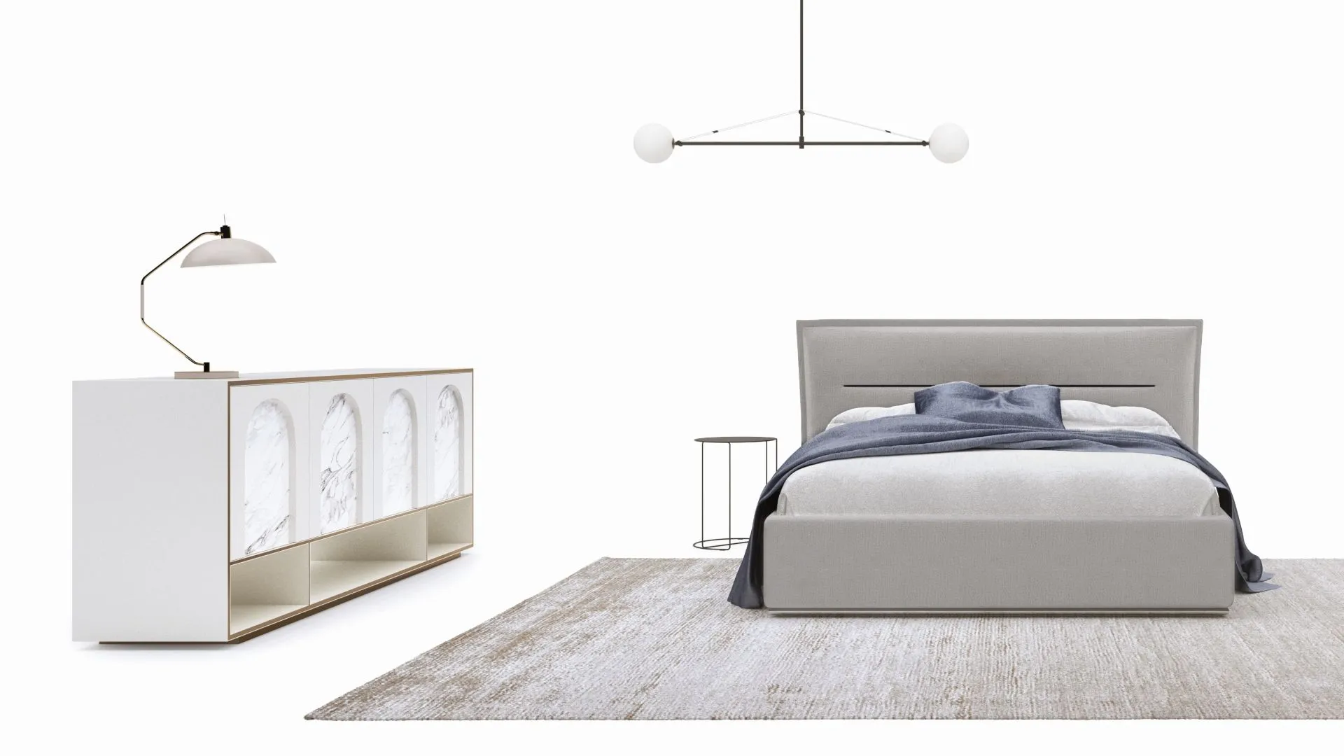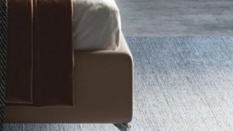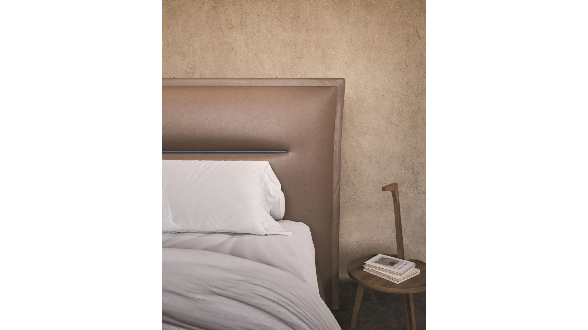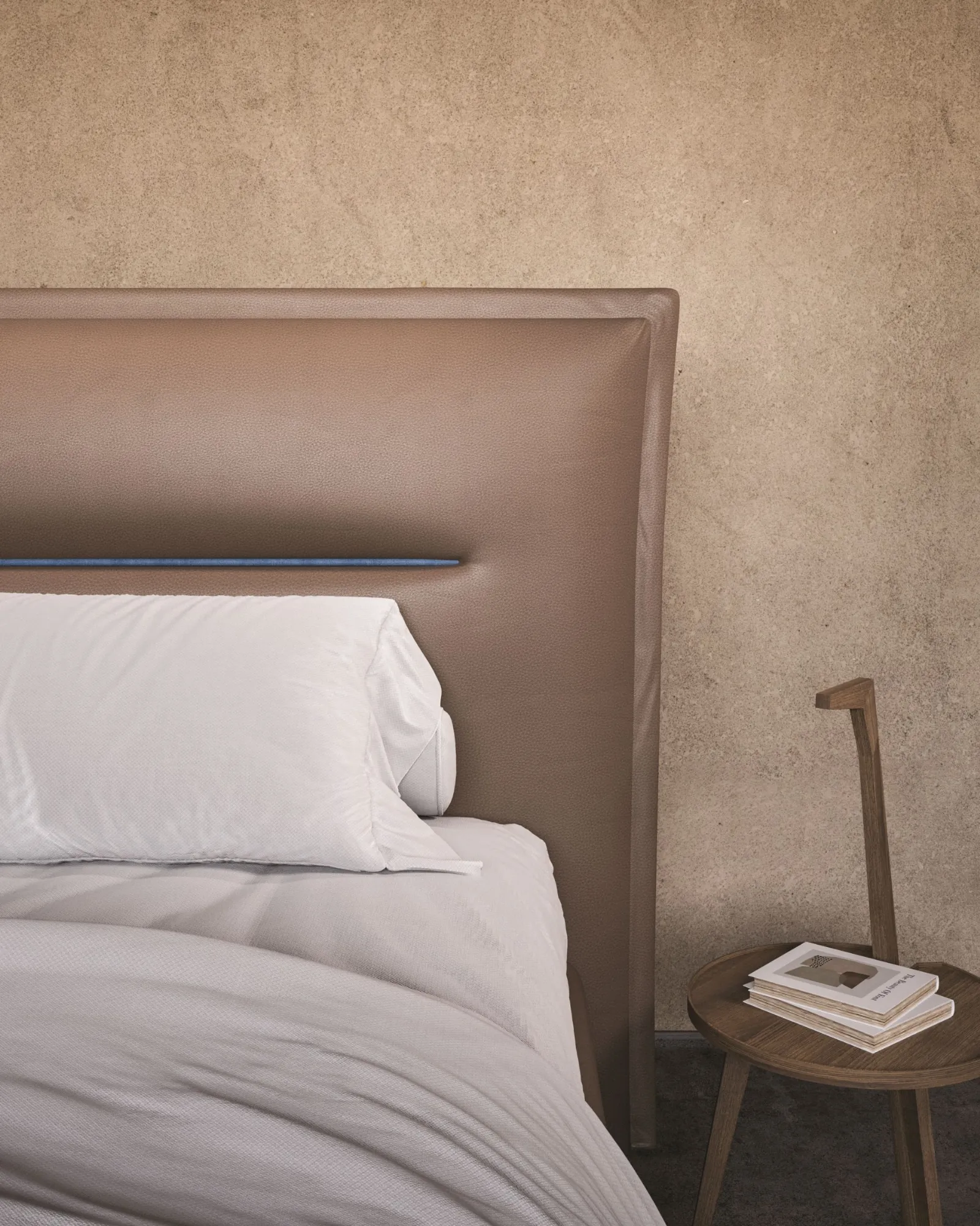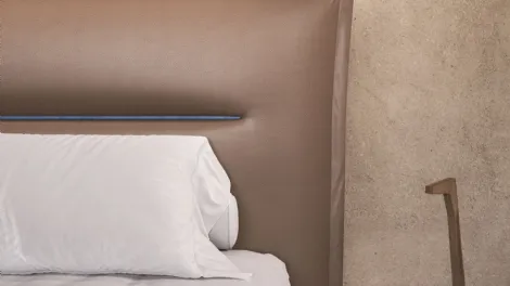 Padded bed available in various bed frame and leg versions, also with bedskirt.