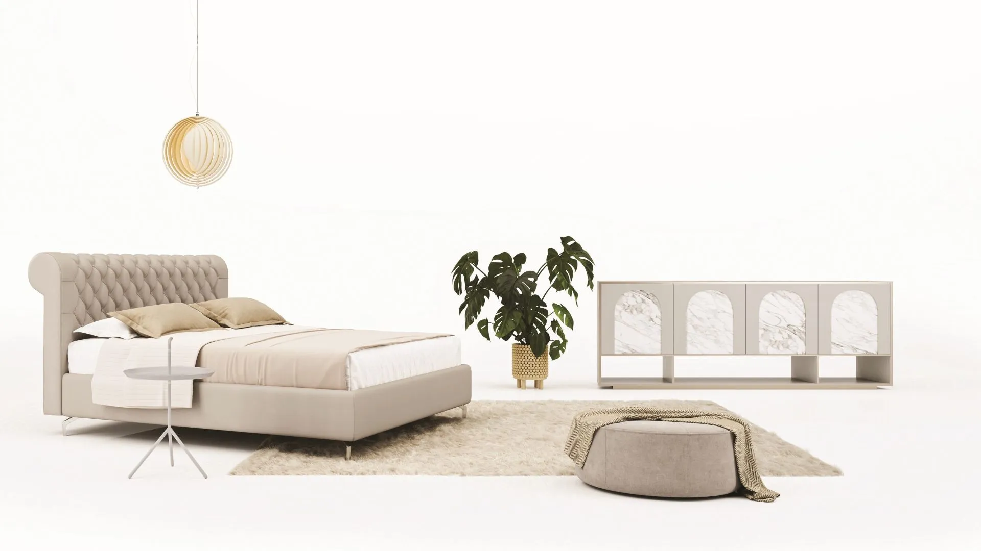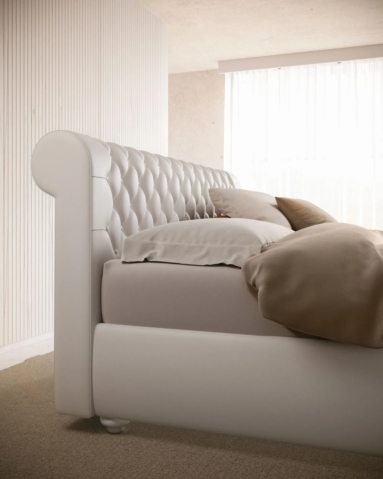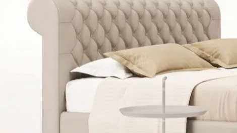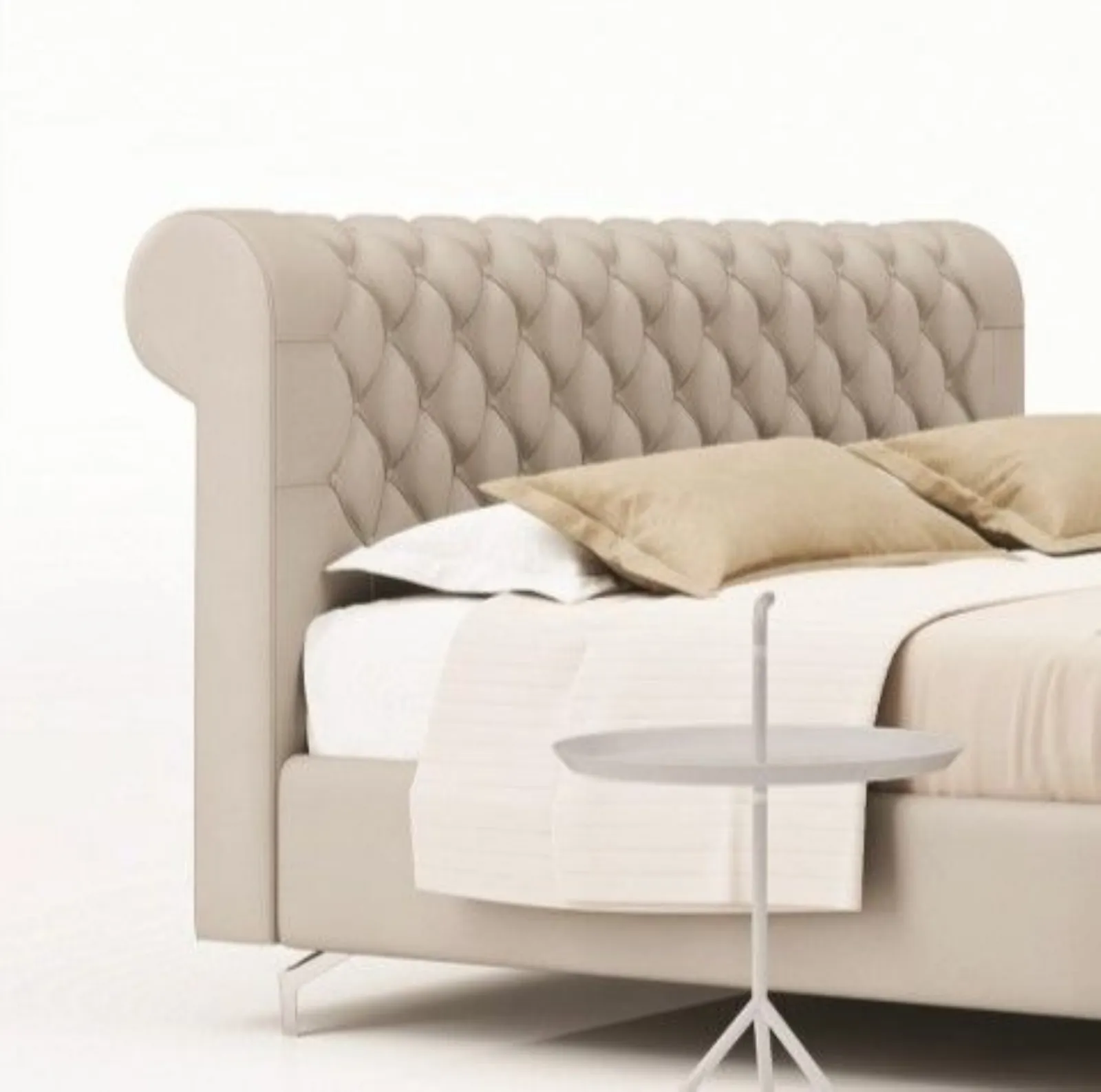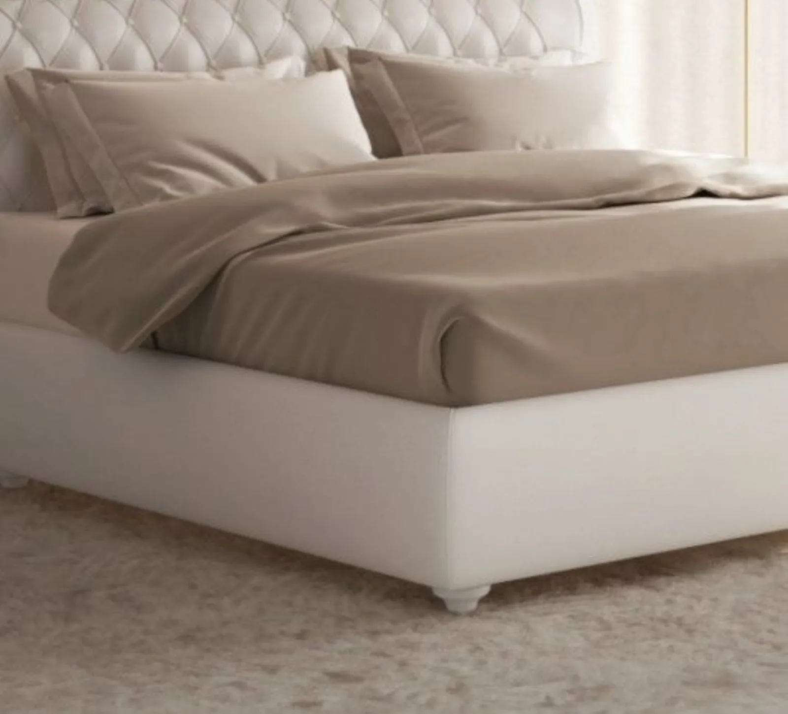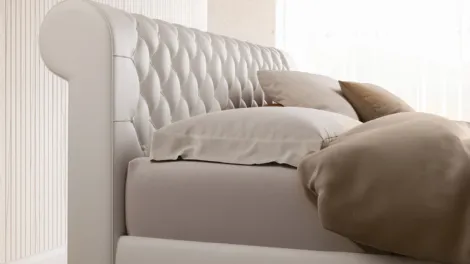 Bed with contemporary but traditional lines, embellished by the elegant quilted headboard. Possibility of valance for the bed frame.