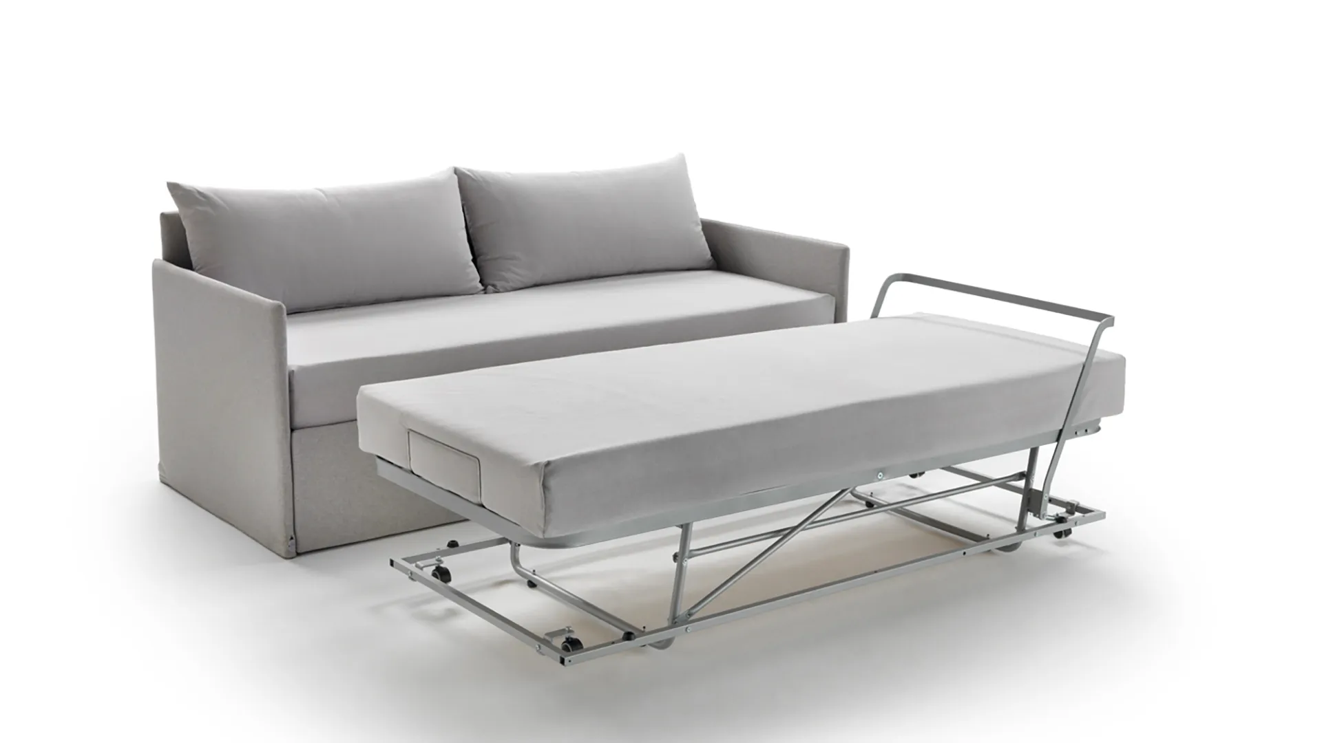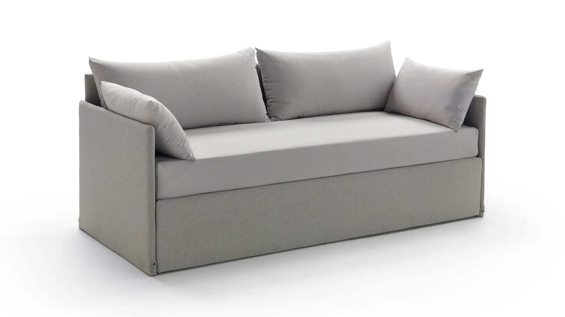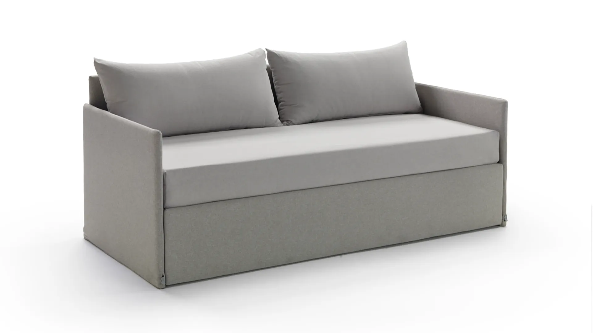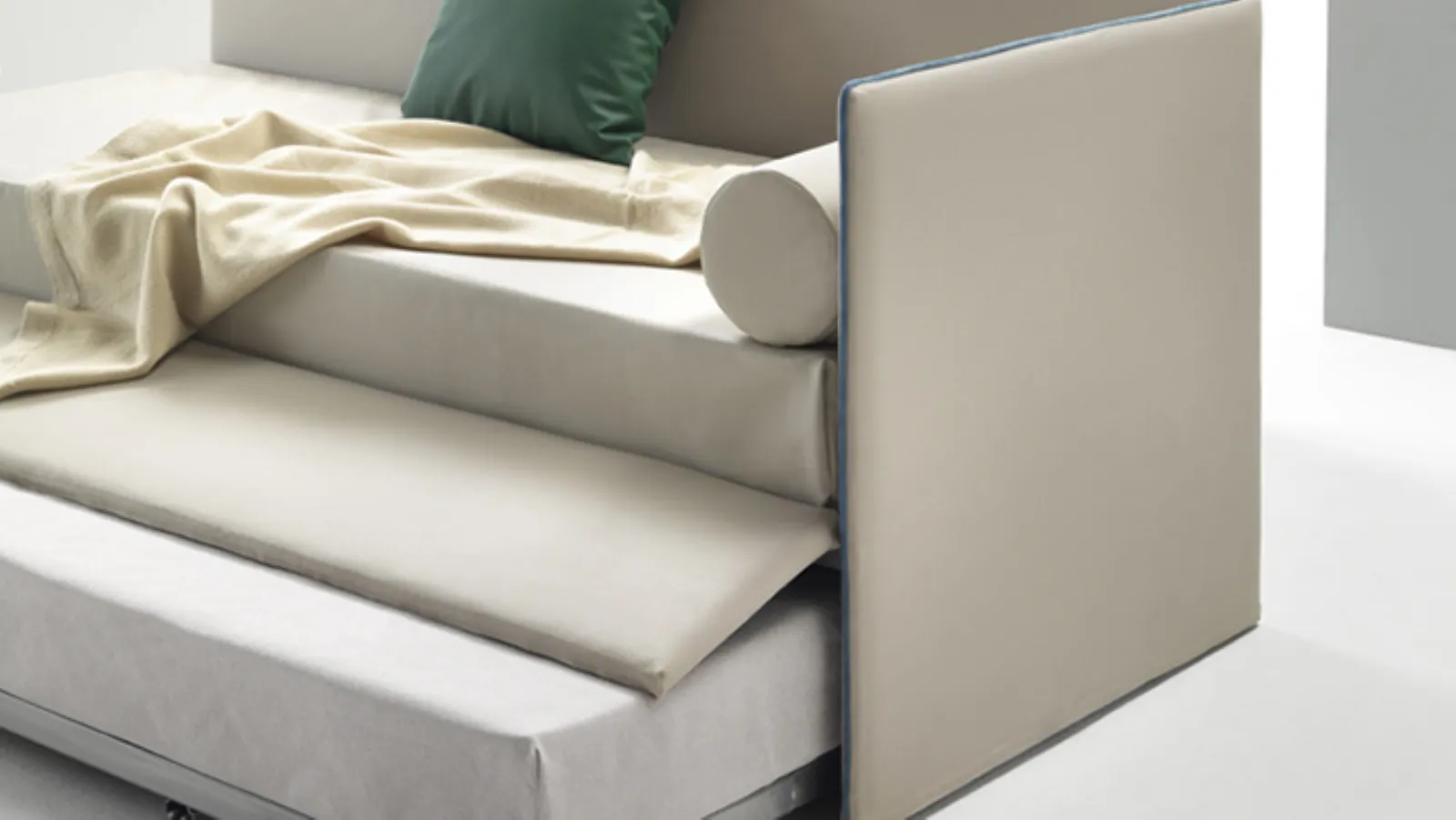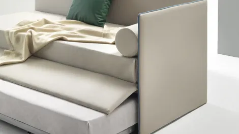The You&me convertible sofa with pull-out bed allows for a multiplicity of solutions with just a few elements. Single bed with the possibility of inserting a second pull-out bed or sofa to be placed in the living area and then transformed into a practical bed, even double, for an extra guest!