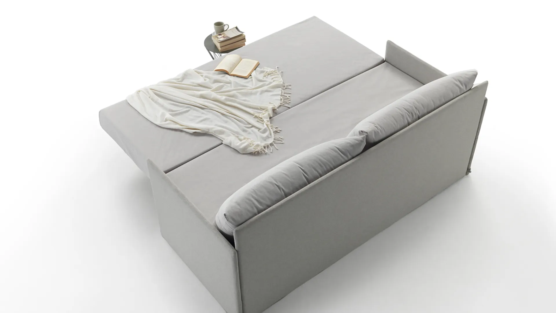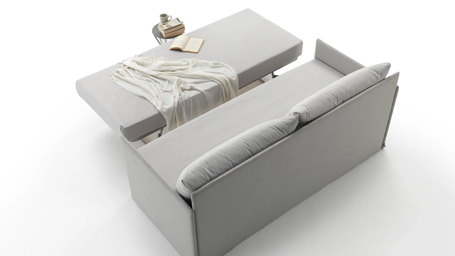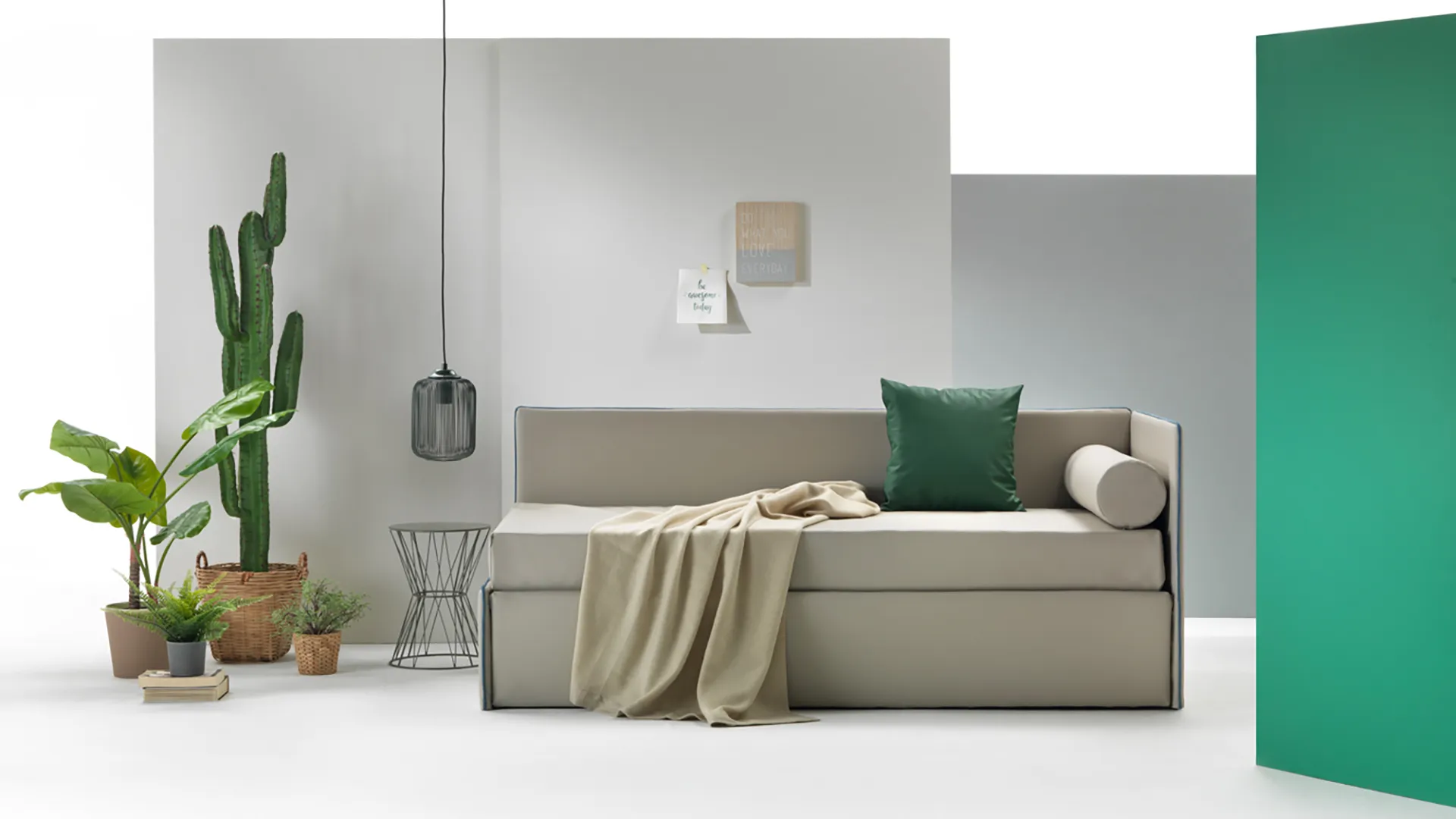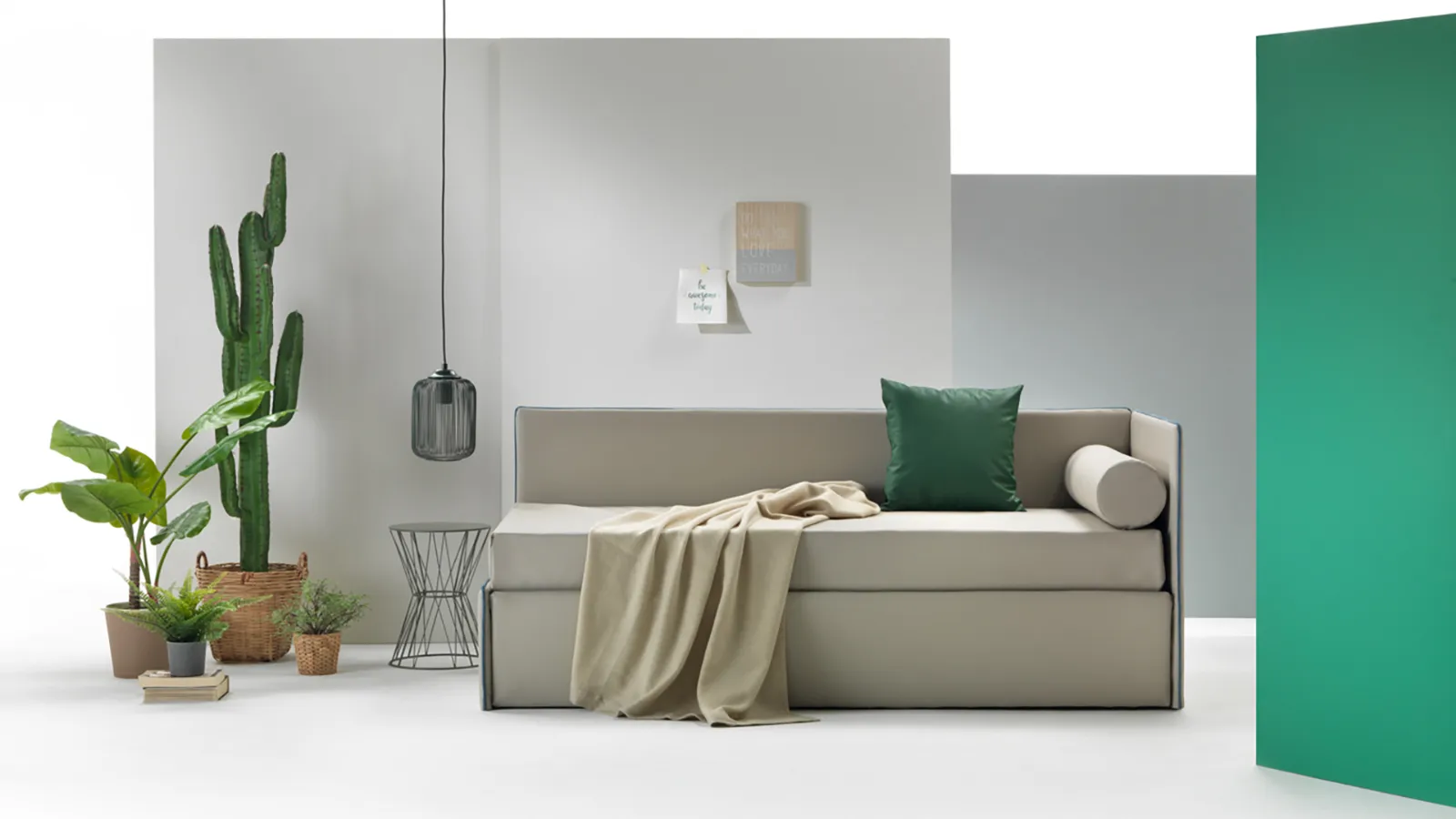 The You&me convertible sofa with pull-out bed allows for a multiplicity of solutions with just a few elements. Single bed with the possibility of inserting a second pull-out bed or sofa to be placed in the living area and then transformed into a practical bed, even double, for an extra guest!