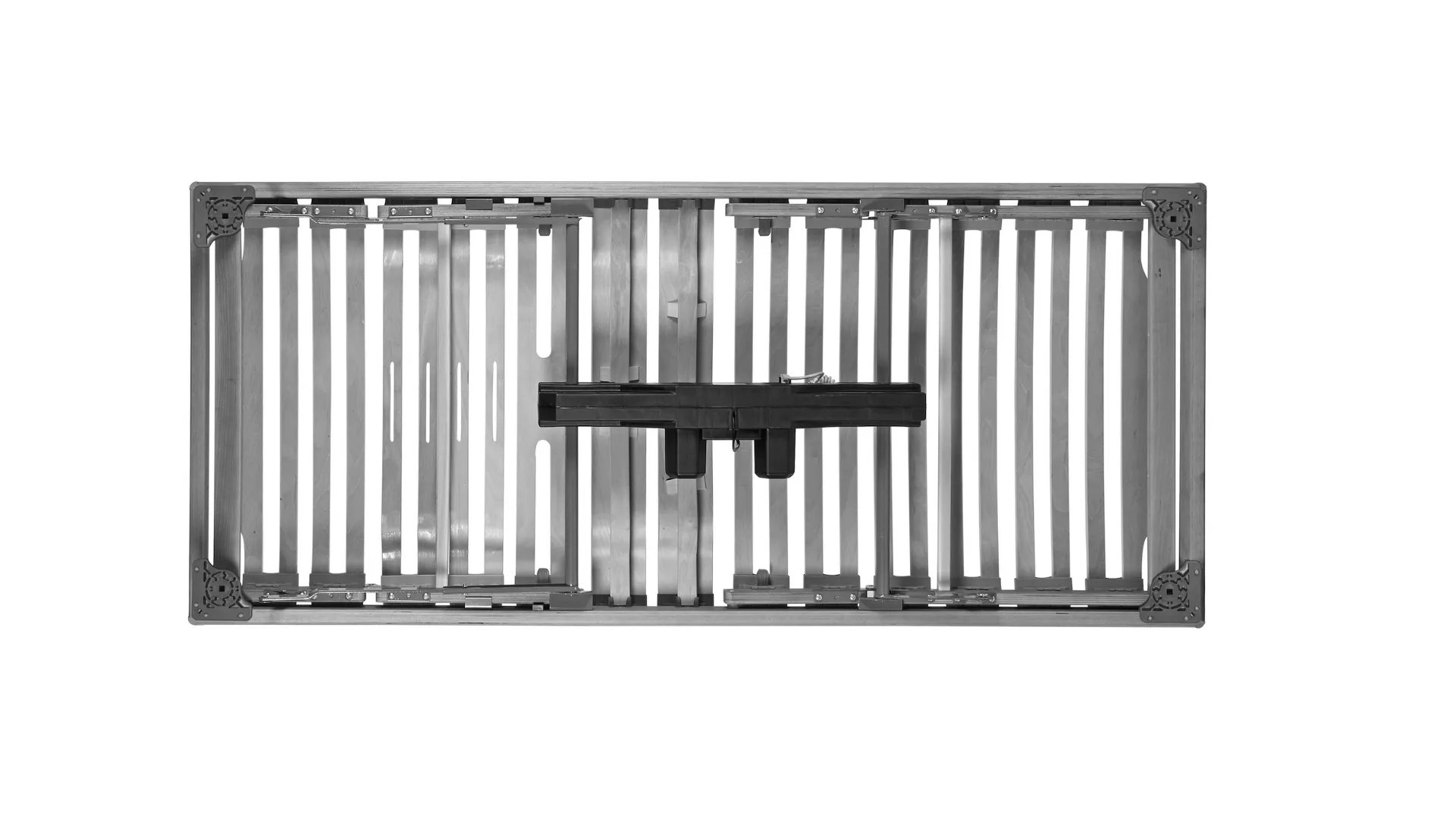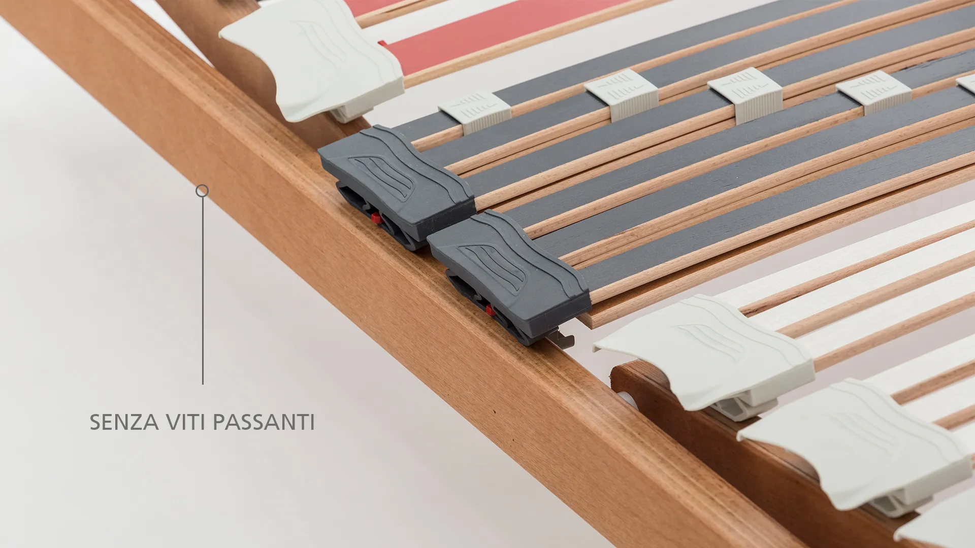 Areas of the body requiring greater adaptability—such as the shoulders and pelvis—are accommodated by "gull-wing" shaped slats, made more flexible by milling. Finally, firmness adjusters allow you to calibrate the load-bearing capacity for personalized comfort.