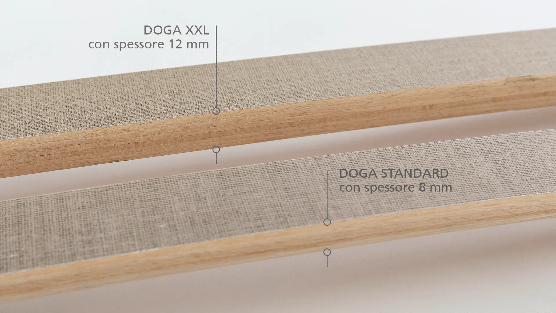 The slats of the Lanuit by Ergogreen bed bases feature shapes, sizes, and finishes designed to provide ideal support for every area of the body. Covered in melamine film with a hygroscopic finish, they offer hygiene and durability: the moisture-insulated surface maintains the correct curvature over time, while the closed pores of the wood prevent dust and mites from accumulating and facilitate cleaning.