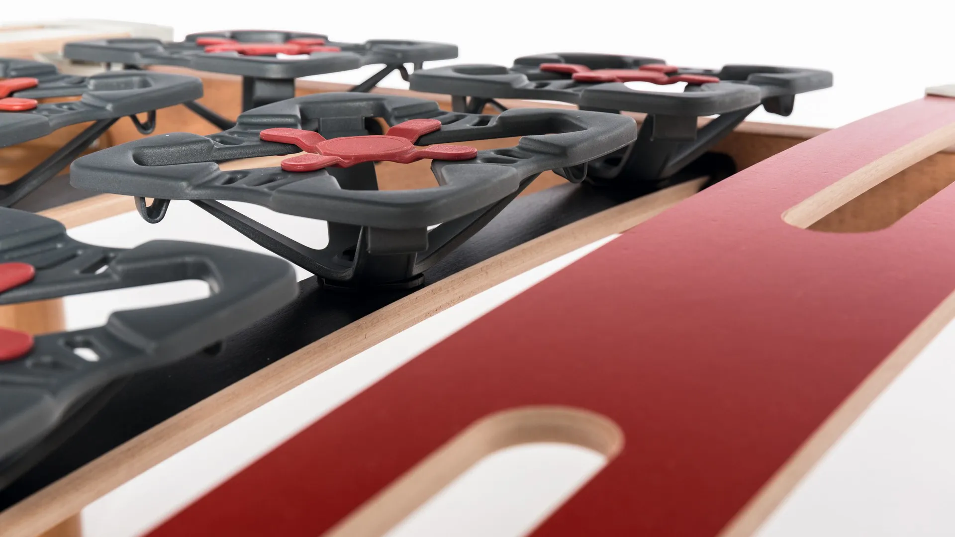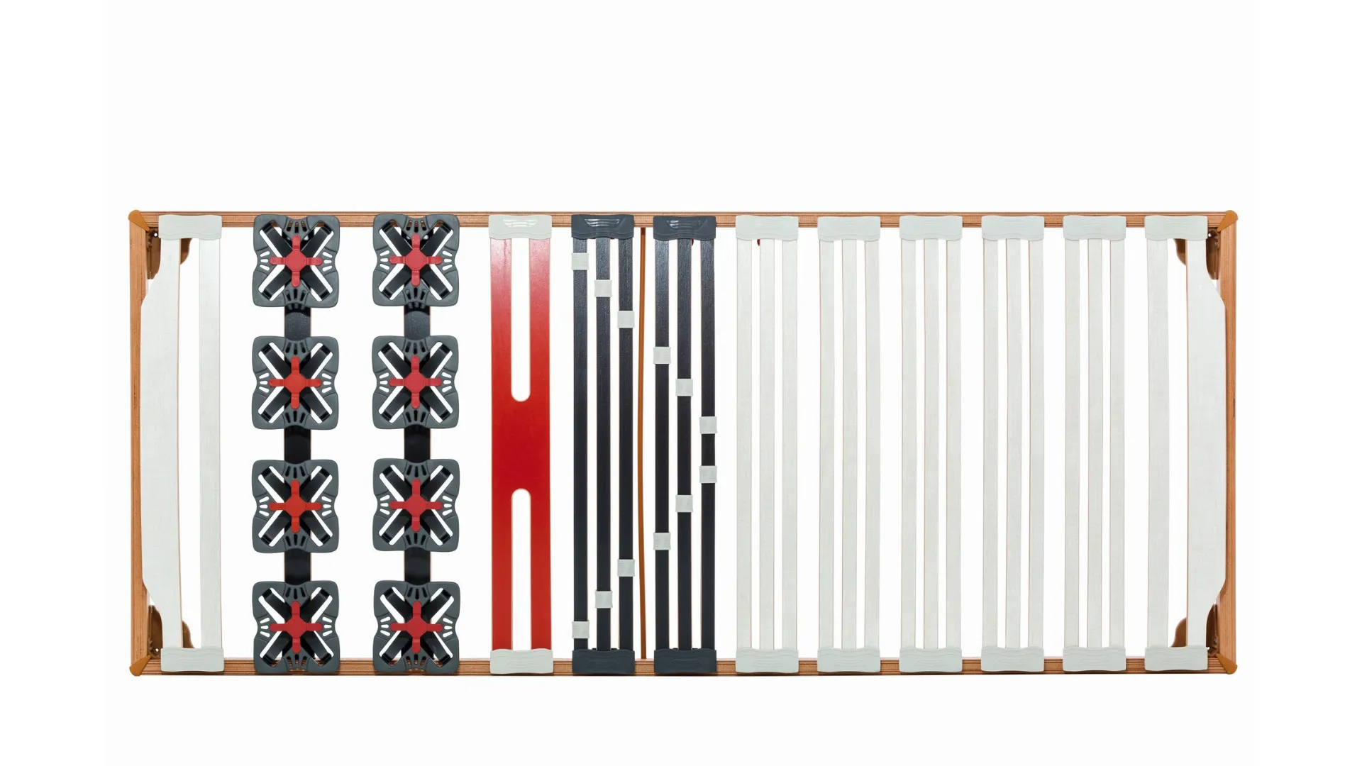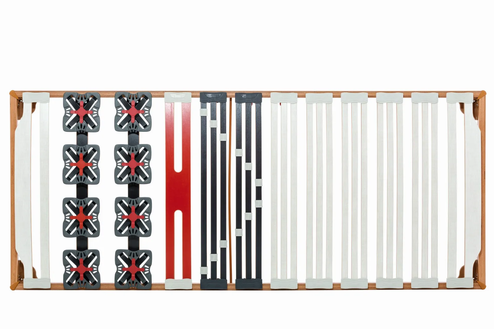 Ring stiffness adjusters allow you to adjust the lift in the pelvis area. This system works like a crossbow; moving the rings from the center outwards increases stiffness.