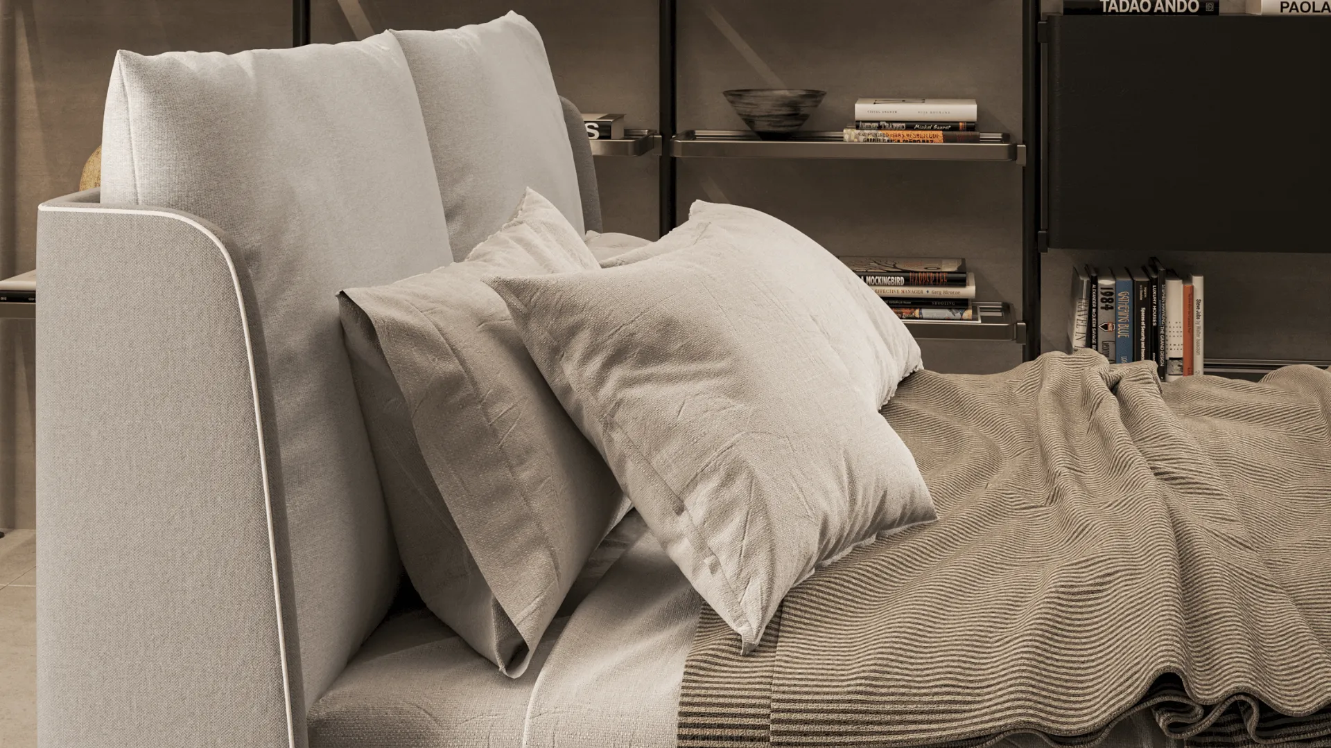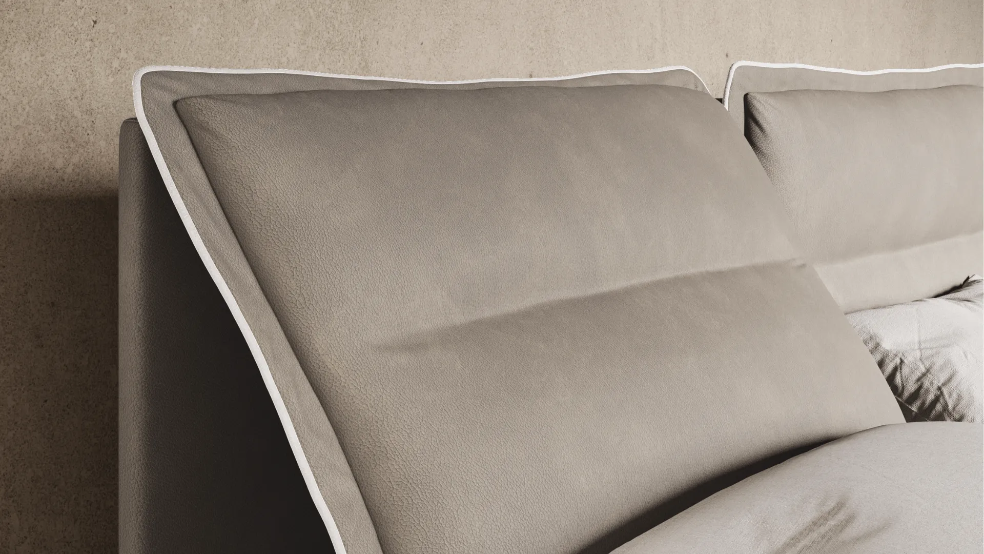 Stitching, edging and workmanship interact with the chosen upholstery, creating tone-on-tone or contrasting combinations that enhance both shape and volume.