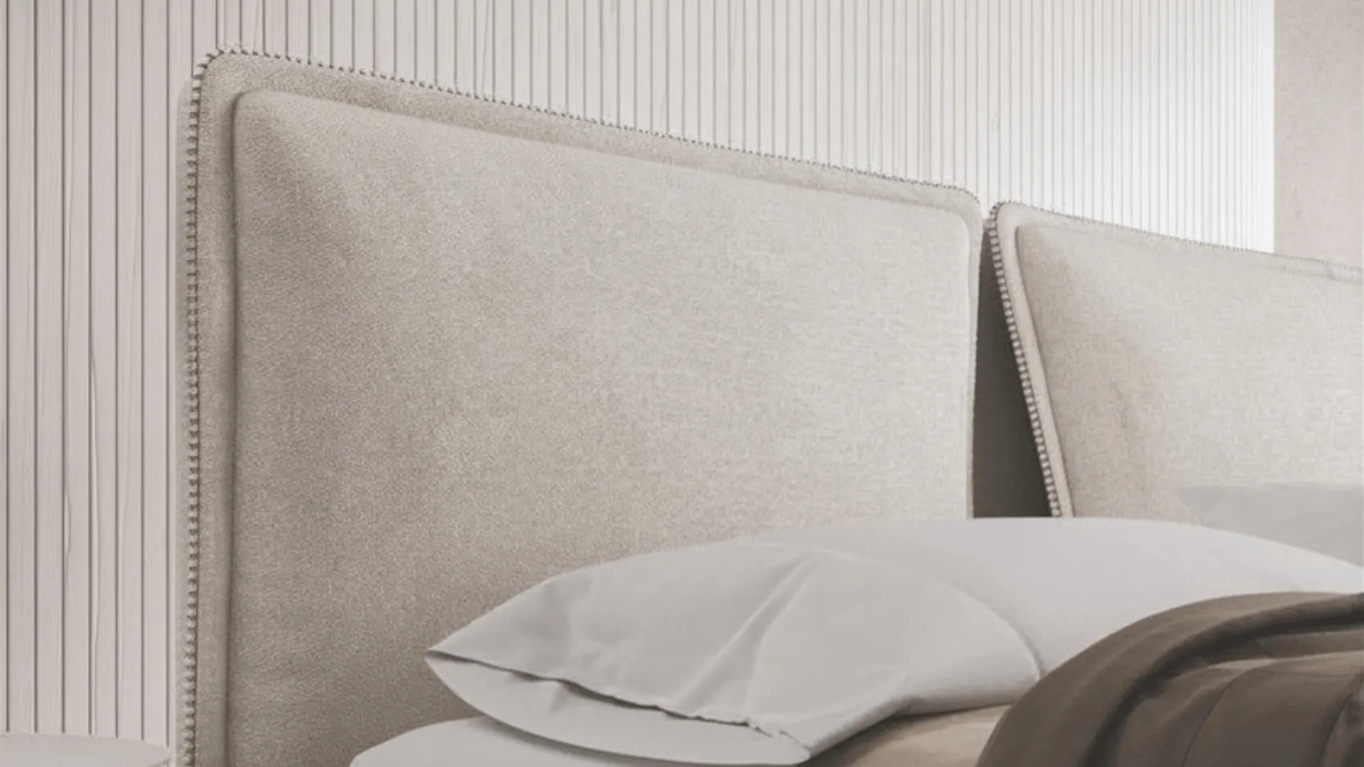 The overlapping profiles create depth and define the structure more distinctly, giving the headboard a stronger, more architectural and scenic presence.